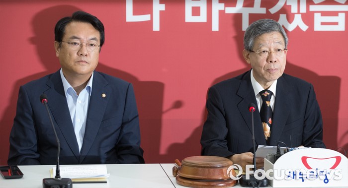 (서울=포커스뉴스) 20일 오전 서울 여의도 국회에서 열린 새누리당 혁신비상대책위원회의에 참석한 김희옥 위원장이 모두발언을 하고 있다. 왼쪽은 정진석 원내대표.