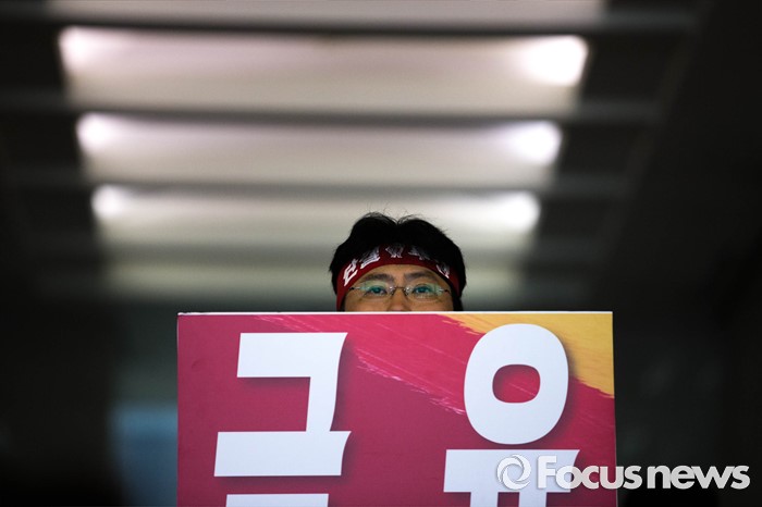 (서울=포커스뉴스) 20일 오전 서울 중구 은행회관에서 금융노조의 '성과연봉제 도입 관련 총파업 1차 결의대회'가 열리고 있다.