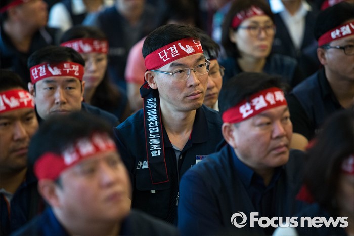 (서울=포커스뉴스) 20일 오전 서울 중구 은행회관에서 금융노조의 '성과연봉제 도입 관련 총파업 1차 결의대회' 가 열리고 있다.