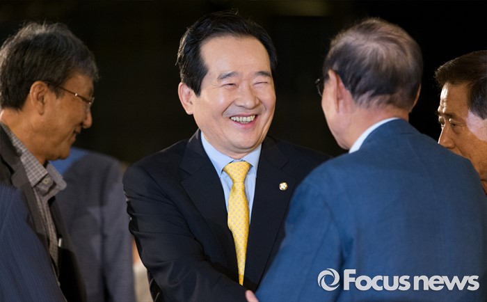 (서울=포커스뉴스) 정세균 국회의장이 20일 오전 서울 종로구 세종문화회관에서 열린 한국방송기자클럽 초청 토론회에서 참석자들과 인사를 나누고 있다.