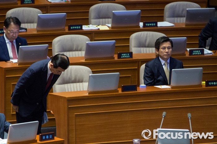 (서울=포커스뉴스) 한민구 국방부 장관이 20일 오전 서울 여의도 국회에서 열린 344회 국회(임시회) 2차 본회의, 사드(THAAD, 고고도미사일방어체계) 배치에 대한 긴급현안질문에 참석해 의원 질의응답에 앞서 인사하고 있다.