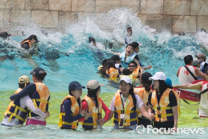 (용인=포커스뉴스) 서울과 수도권 등 전국 대부분 지역에 폭염주의보가 내려진 20일 오후 경기도 용인 에버랜드 캐리비안베이에서 시민들이 물놀이를 즐기고 있다.