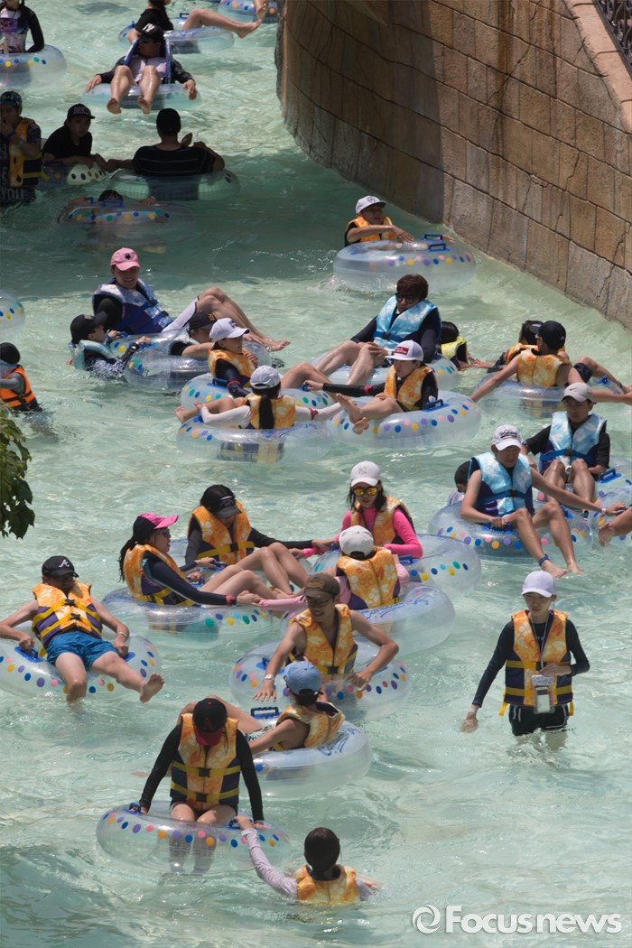 (용인=포커스뉴스) 서울과 수도권 등 전국 대부분 지역에 폭염주의보가 내려진 20일 오후 경기도 용인 에버랜드 캐리비안베이에서 시민들이 물놀이를 즐기고 있다.
