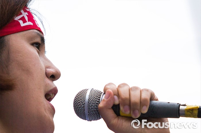 (서울=포커스뉴스) 20일 오후 서울 여의도 산업은행 앞에서 '민주노총 총파업 총력투쟁' 결의대회가 열리고 있다. 이번 결의대회에서 민노총 조합원들은 한상균 민노총 위원장 실형선고, 성과연봉제 등을 규탄했다.