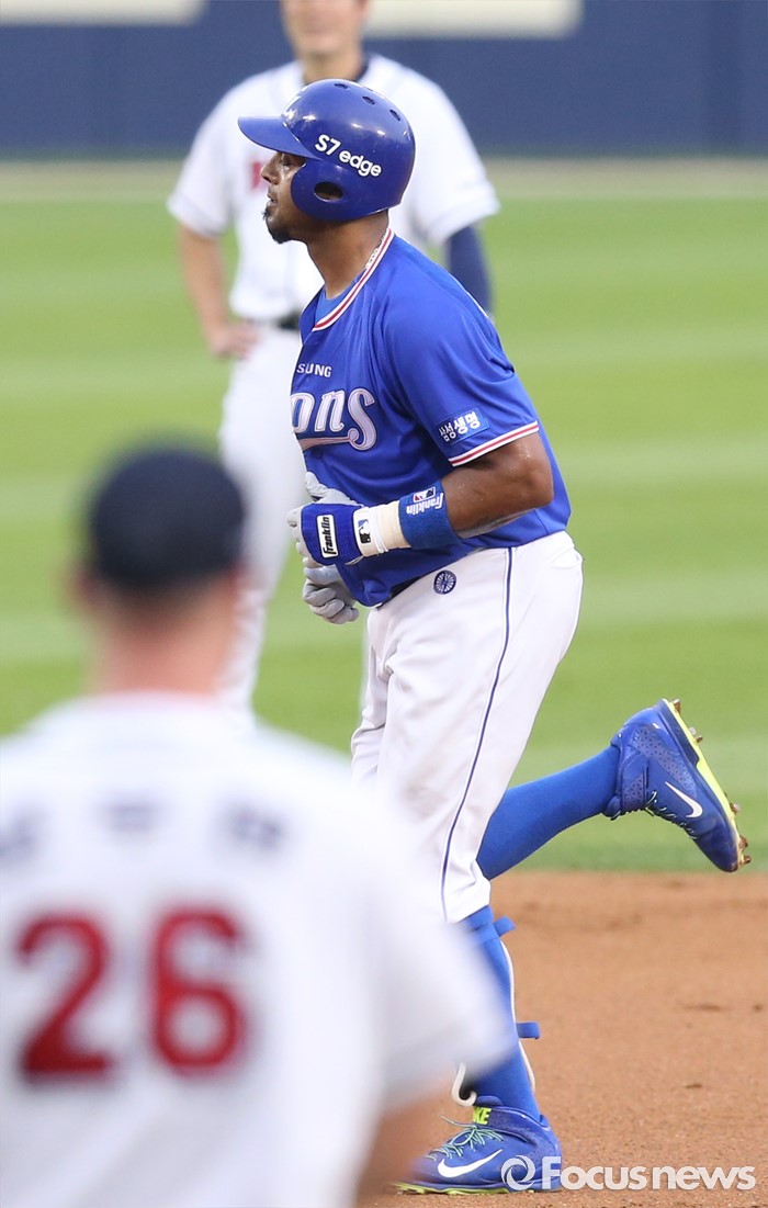 (서울=포커스뉴스) 20일 서울 잠실구장에서 열린 2016 프로야구 삼성-두산 경기 3회초 2사후 삼성 발디리스가 좌월 만루홈런을 치고 베이스를 돌고 있다.
