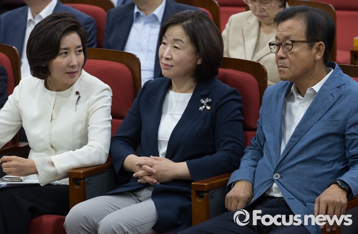 (서울=포커스뉴스) 21일 오전 서울 여의도 국회 의원회관에서 열린 퓨처라이프포럼 2기 출범식 및 세미나에 참석한 나경원(왼쪽부터) 새누리당 의원과 포럼 공동대표인 심상정 정의당 상임대표, 원혜영 더불어민주당 의원이 대화하고 있다.