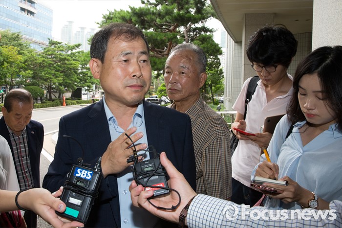 (서울=포커스뉴스) 최봉태 변호사가 21일 오전 서울 양천구 서울남부지방법원에서 열린 국가를 상대로 한 손해배상 청구 소송 선거공판이 끝난 뒤 취재진 질문에 답하고 있다. 서울남부지법 민사합의15부(부장판사 이광영)는 한국원폭피해자협회 서울지부 회원 230명이 국가를 상대로 낸 손해배상 청구 소송에서 원고 패소로 판결했다.