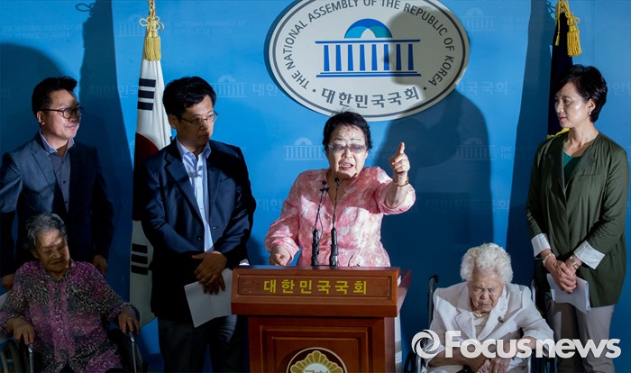 (서울=포커스뉴스) 21일 오전 서울 여의도 국회 정론관에서 열린 위안부 특별법 입법 청원 기자회견에 참석한 이용수 할머니가 정부를 비판하고 있다.
