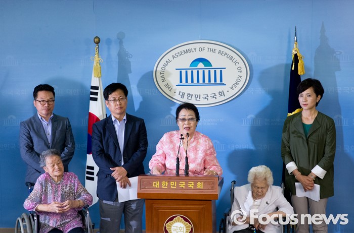 (서울=포커스뉴스) 21일 오전 서울 여의도 국회 정론관에서 열린 위안부 특별법 입법 청원 기자회견에 참석한 이용수 할머니가 정부를 비판하고 있다.