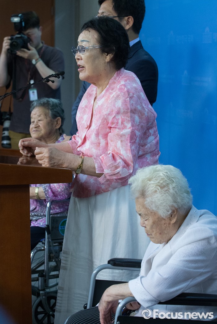 (서울=포커스뉴스) 21일 오전 서울 여의도 국회 정론관에서 열린 위안부 특별법 입법 청원 기자회견에 참석한 이용수 할머니가 정부를 비판하고 있다.
