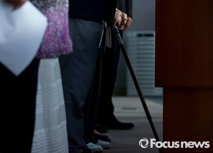 (서울=포커스뉴스) 21일 오전 서울 여의도 국회 정론관에서 유은혜 더불어민주당 의원, 최성 고양시장, 이용수, 박옥선, 이옥선 할머니 등이 위안부 특별법 입법 청원 기자회견을 하고 있다.