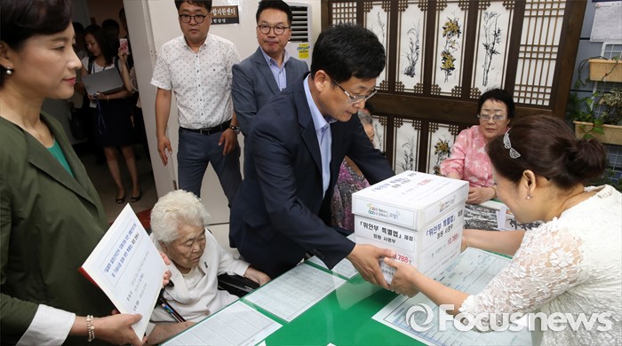 (서울=포커스뉴스) 21일 오전 서울 여의도 국회 정론관에서 유은혜 더불어민주당 의원, 최성 고양시장, 이용수, 박옥선, 이옥선 할머니 등이 위안부 특별법 입법 청원 기자회견을 마친 뒤 민원실을 찾아 청원서를 제출하고 있다.