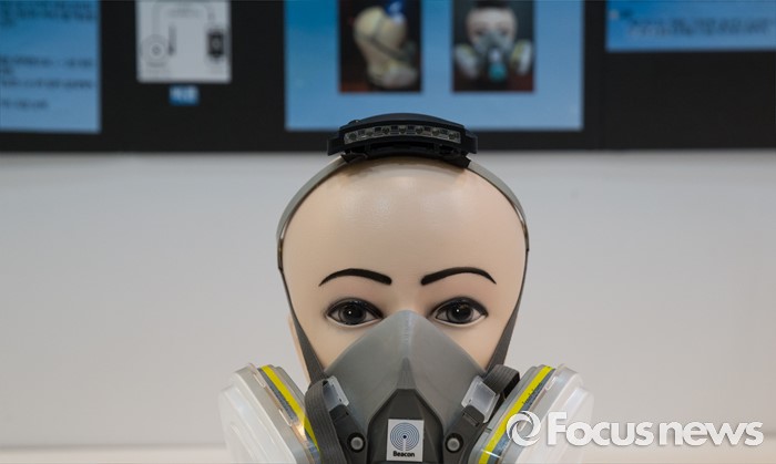 (서울=포커스뉴스) 21일 오전 서울 강남구 코엑스에서 열린 '2016 청소년 발명 페스티벌'에 전시된 비콘 마스크.