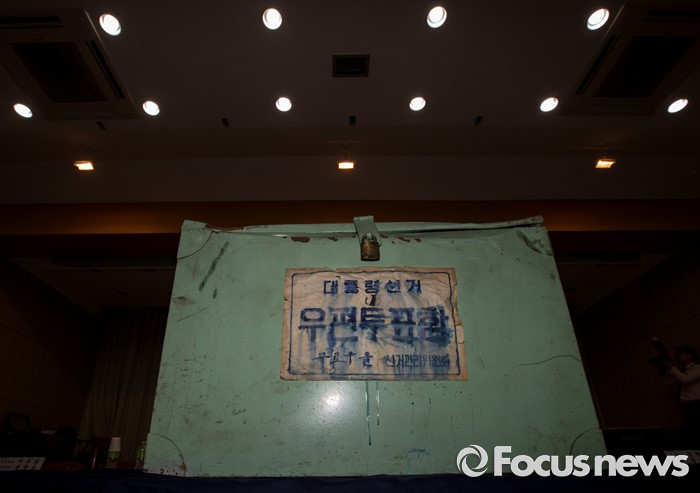 (서울=포커스뉴스) 20일 오전 서울 종로구 선거연수원에서 공개된 1987년 제13대 대통령선거 구로구을 우편투표함이 개함을 기다리고 있다.
