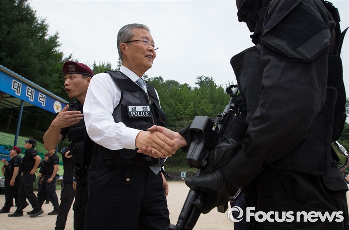 | △ 경찰 특공대 격려하는 김종인 |