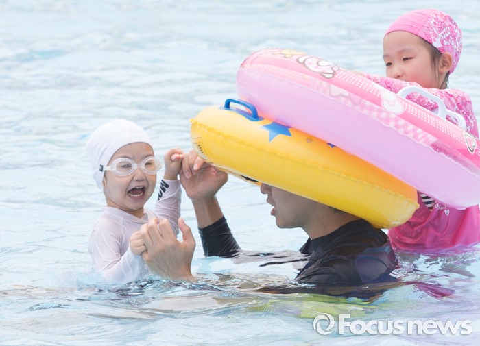 (서울=포커스뉴스) 21일 오후 서울 광진구 뚝섬 한강공원 수영장을 찾은 시민들이 물놀이를 즐기고 있다.