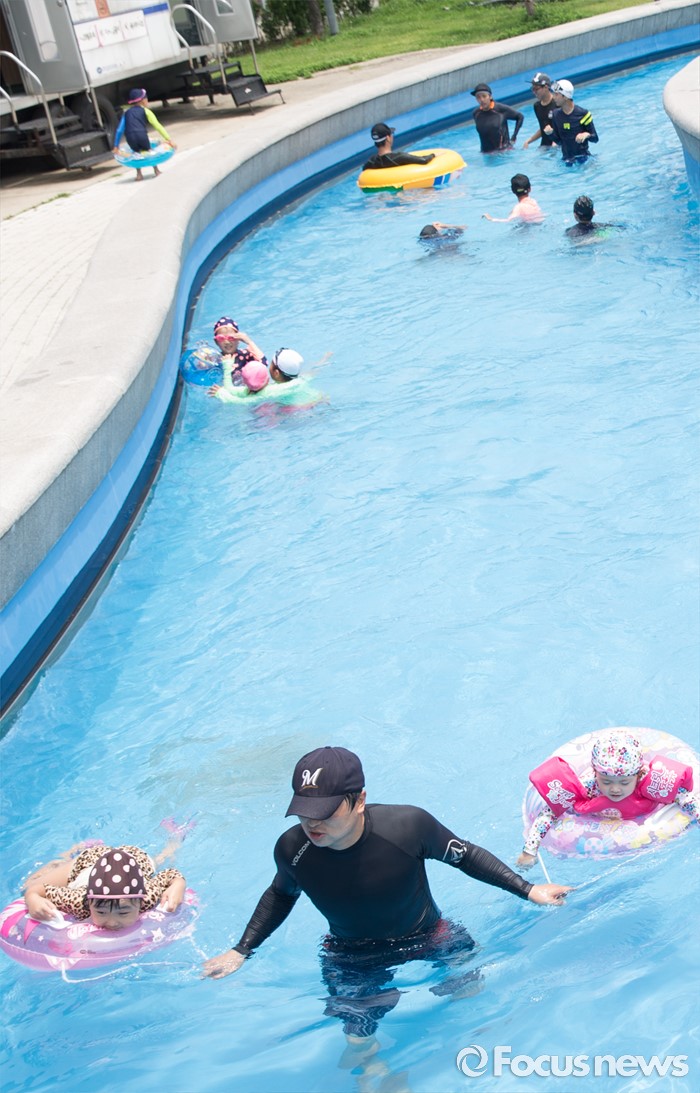 (서울=포커스뉴스) 21일 오후 서울 광진구 뚝섬 한강공원 수영장을 찾은 시민들이 물놀이를 즐기고 있다.
