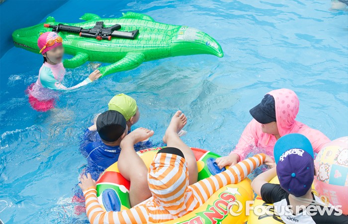 (서울=포커스뉴스) 21일 오후 서울 광진구 뚝섬 한강공원 수영장을 찾은 어린이들이 물놀이를 즐기고 있다.