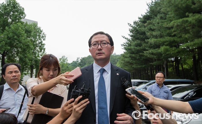 (서울=포커스뉴스) 21일 오후 대법원에서 열린 의료법 위반 혐의로 기소된 치과의사 정모씨(48)에 대한 상고심 전원합의체 선고 후 참관을 마친 추무진 대한의사협회장이 취재진의 질문에 답하고 있다. 대법원은 이날 치과의사의 보톡스 진료가 의료법 위반이 아니다는 취지로 '치과의사의 보톡스 진료는 유죄'라는 판결을 파기 환송했다.