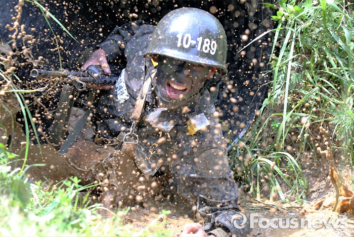 (논산=포커스뉴스) 폭염경보가 발령된 21일 충남 논산 연무읍 육군훈련소 각개전투종합훈련장에서 26교육연대 3교육대 훈련병이 훈련을 받고 있다.