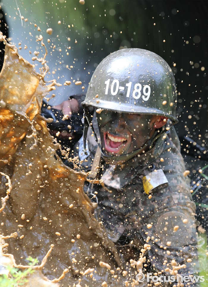 (논산=포커스뉴스) 폭염경보가 발령된 21일 충남 논산 연무읍 육군훈련소 각개전투종합훈련장에서 26교육연대 3교육대 훈련병이 훈련을 받고 있다.