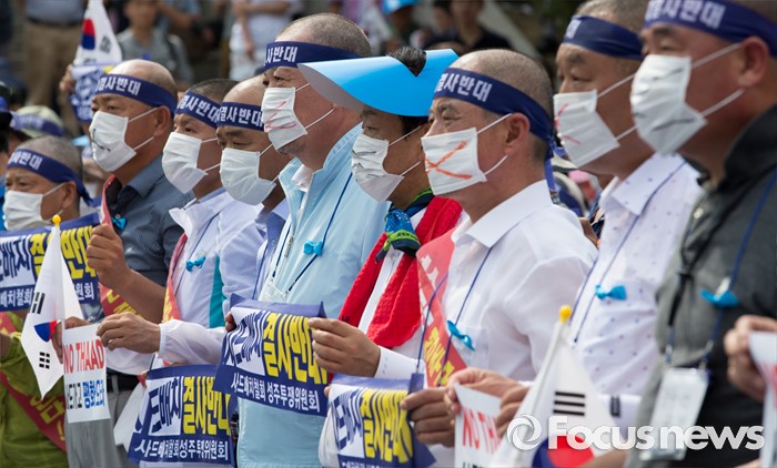 (서울=포커스뉴스) 21일 오후 서울역 광장에서 사드 배치 반대를 요구하는 경북 성주군민 2천여 명이 대규모 상경집회에 참가해 침묵시위를 하고 있다.
