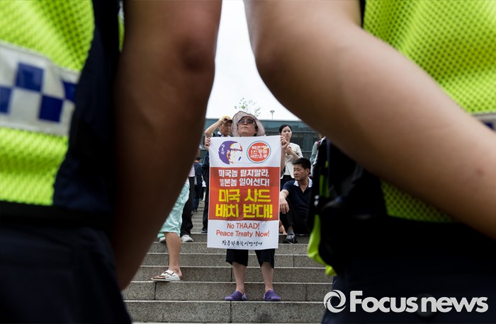 (서울=포커스뉴스) 21일 오후 서울역 광장에서 사드 배치 반대를 요구하는 경북 성주군민 2천여 명이 대규모 상경집회를 하고 있다.