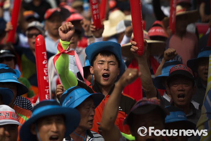 (서울=포커스뉴스) 21일 오후 서울 여의도 산업은행 본점 앞에서 농축산물의 김영란법 적용 제외를 요구하는 전국 농축산인 총궐기대회가 열리고 있다.