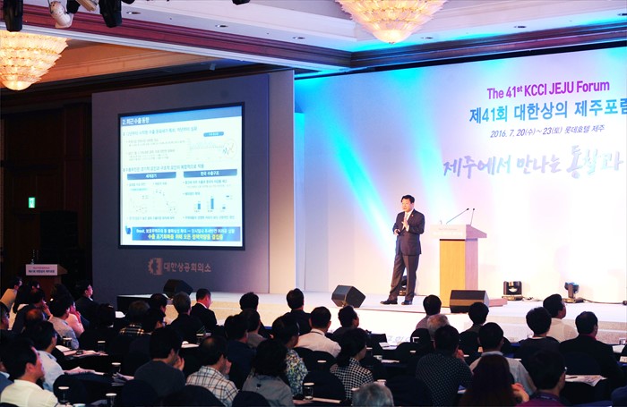 | △ 제41회 대한상공회의소 제주포럼 주기조강연하는 주형환 장관 |
