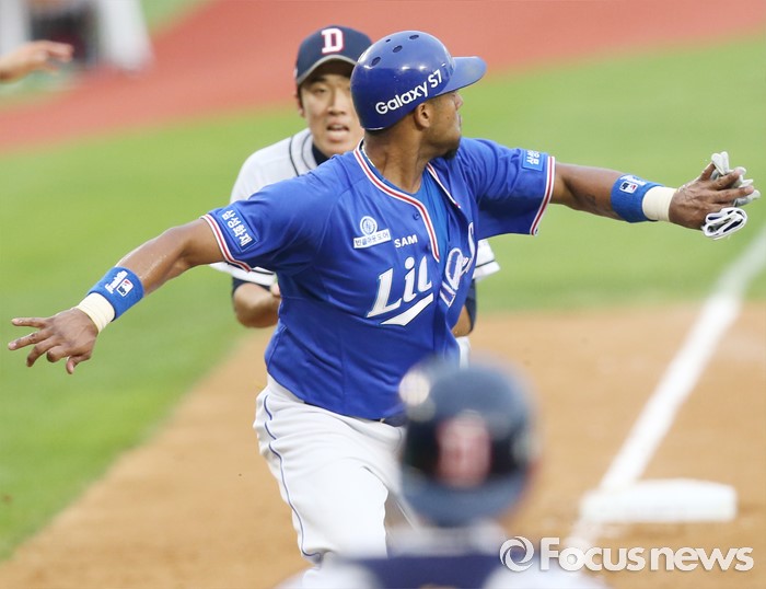 (서울=포커스뉴스) 21일 서울 잠실구장에서 열린 2016 프로야구 삼성-두산 경기 2회초 무사 1,3루에서 삼성 최재원의 투수앞 땅볼때 3루주자 밯디리스가 런다운에 걸려 두산 3루수 허경민에게 쫓기고 있다.