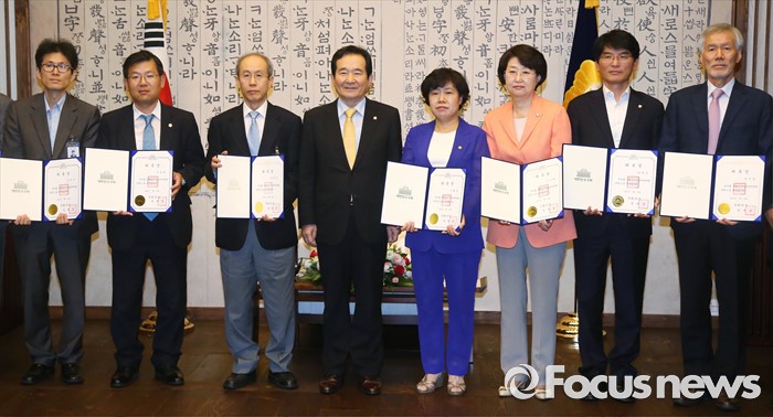 | △ 기념촬영하는 정세균 의장과 위원들 |