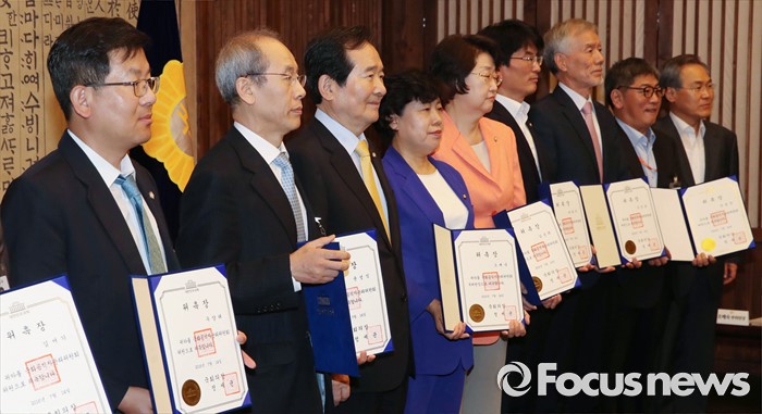 | △ 국회 공직자윤리위원들과 포즈 취한 정세균 국회의장 |