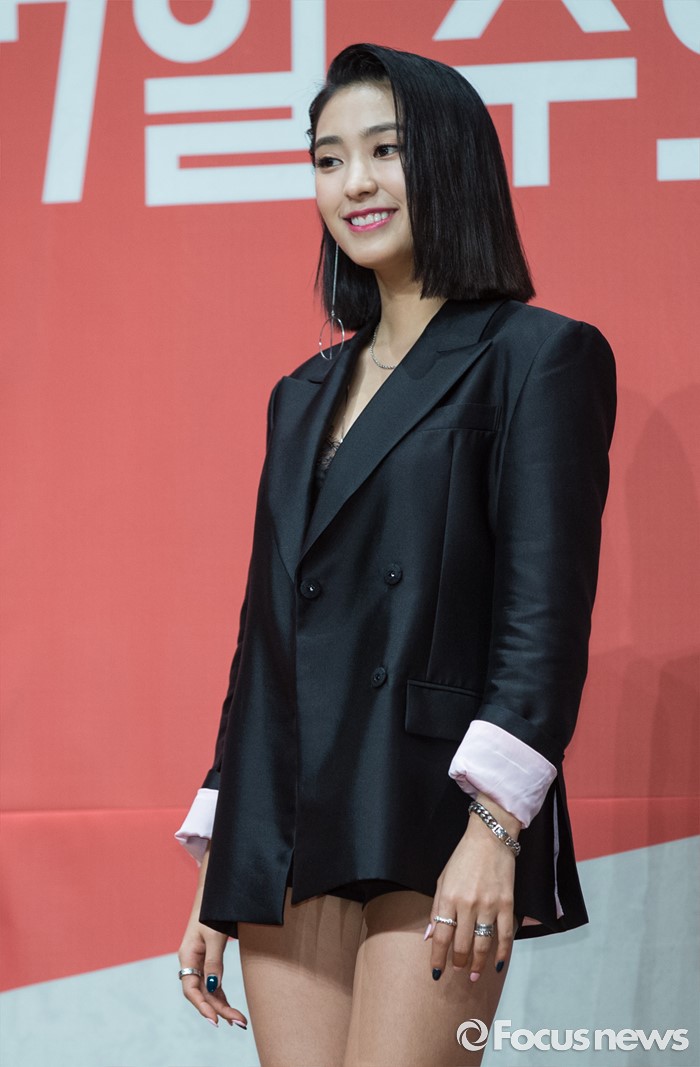 (서울=포커스뉴스) 22일 오후 서울 영등포구 63스퀘어에서 열린 Mnet '힛 더 스테이지' 제작발표회에 참석한 가수 보라가 포토타임을 갖고 있다,