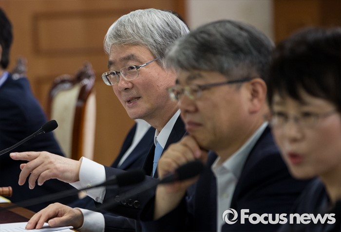 (서울=포커스뉴스) 22일 오후 서울정부청사에서 열린 규제개혁위원회의 심사에 참석한 서동원 규제개혁위 민간위원장이 위원들과 대화하고 있다. 규제개혁위는 이날 회의를 통해 '부정청탁 과 금품 등 수수의 금지에 관한 법률'(김영란법) 시행령안이 불합리한 규제에 해당하는 지 여부를 심사할 예정이다.