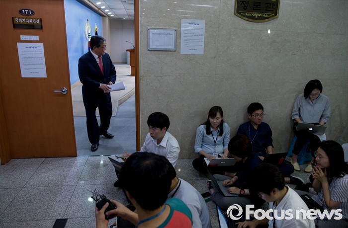 (서울=포커스뉴스) 조원진 새누리당 의원이 22일 오후 서울 여의도 국회 정론관에서8·9 전당대회 최고위원 출마 기자회견을 마친 뒤 취재진 질문에 답하기 위해 이동하고 있다.