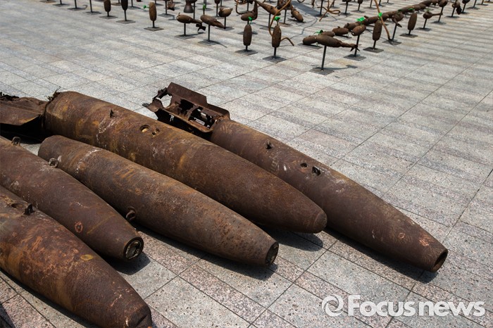 (서울=포커스뉴스) 22일 오후 서울 중구 서울광장에서 '전쟁 없는 세상을 위한 에이이브이(Art's Eye View) 프로젝트 전시가 열리고 있다. 미공군의 사격장으로 쓰였던 경기도 매향리에서 반출된 포탄 및 탄피를 활용, 1000여점의 예술작품으로 만든 이번 전시는 오는 24일까지 열릴 예정이다.