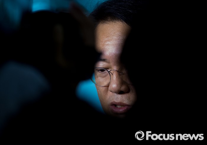 | △ 취재진 질문 답하는 정진석 |