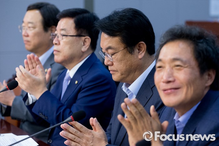 정진석 원내대표는 주대환 대표에게 "한국 노동운동과 진보운동을 이끌었던 주대환 대표가 새누리당이 주최하는 행사에 귀한 경험을 공유해주시는 일은 쉬운 일이 아니었으리라 생각한다"며 사의(謝意)를 표했다.22일 오후 서울 여의도 국회 의원회관에서 열린 '격차해소를 위한 해법, 왜 중향평준화인가?' 세미나에 참석한 이학재(오른쪽부터) 새누리당 정책위 일자리특위 위원장, 정진석 원내대표, 김광림 정책위의장, 김종석 여의도연구원장이 박수치고 있다. 2016.07.22 박동욱 기자 22일 오후 서울 여의도 국회 의원회관에서 열린 '격차해소를 위한 해법, 왜 중향평준화인가?' 세미나에 참석한 김종석(왼쪽부터) 여의도연구원장, 김광림 새누리당 정책위의장, 정진석 원내대표, 이학재 정책위 일자리특위 위원장, 김태기 단국대 교수가 대화하고 있다. 2016.07.22 박동욱 기자