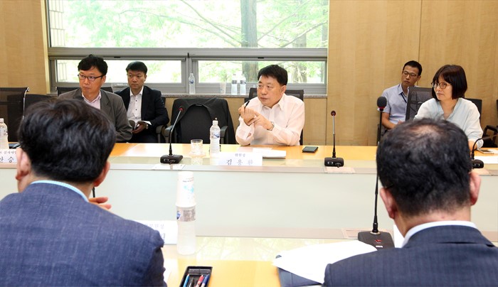 (대전-포커스뉴스) 김용환 원자력안전위원회 위원장이 22일 대전 유성구 한국원자력연구원을 방문, 안전규제 현안을 논의하고 있다. <사진제공=원자력안전위원회>