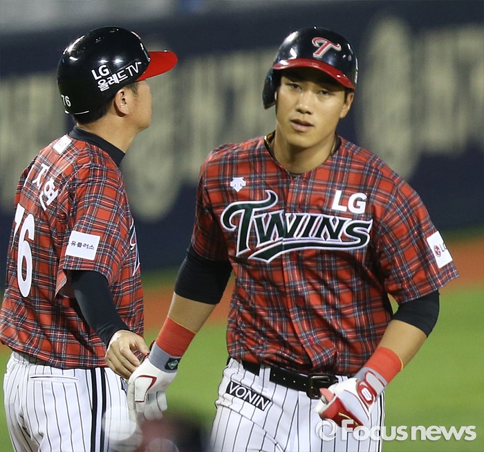 (서울=포커스뉴스) 22일 서울 잠실구장에서 열린 2016 프로야구 두산-LG 경기 9회말 2사 1루에서 LG 이천웅이 우월 2점 홈런을 치고 3루를 돌며 유지현 코치의 환영을 받고 있다.