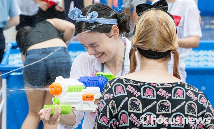 (서울=포커스뉴스) 23일 오후 서울 여의도 한강공원에서 열린 한강 물싸움 축제에서 참가자들이 시원한 물총싸움을 하며 더위를 식히고 있다.