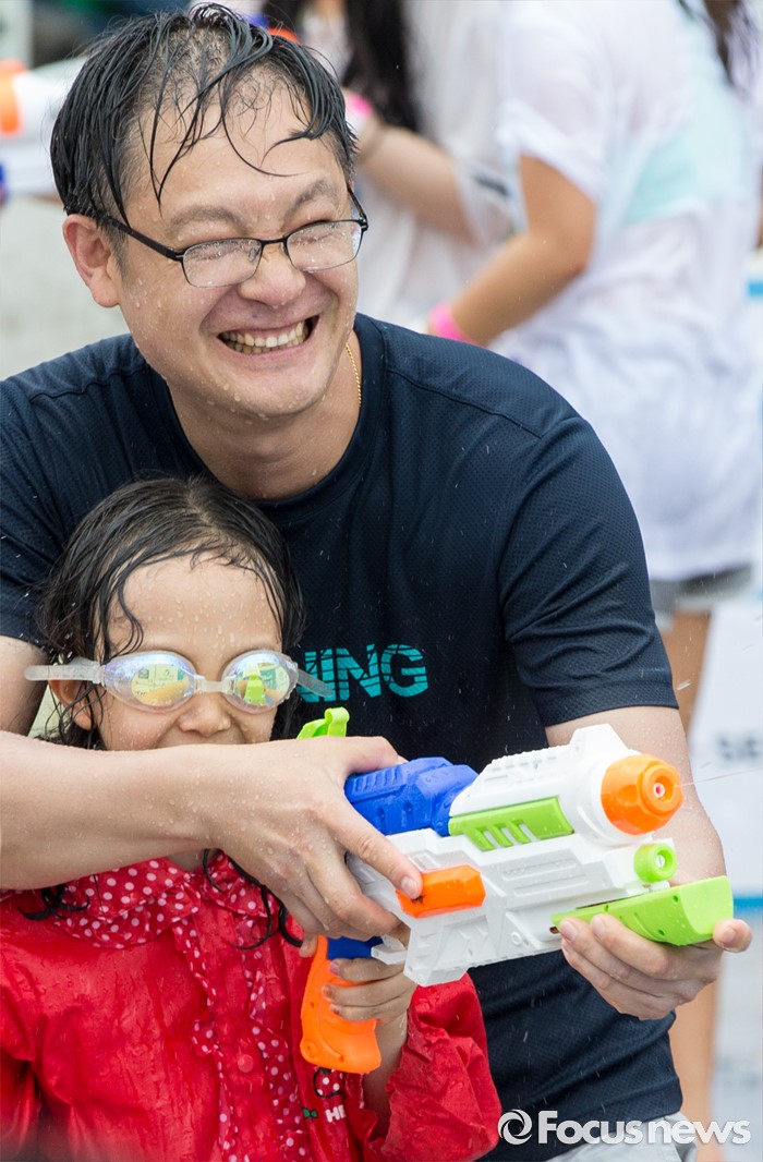 (서울=포커스뉴스) 23일 오후 서울 여의도 한강공원에서 열린 한강 물싸움 축제에서 참가자들이 시원한 물총싸움을 하며 더위를 식히고 있다.