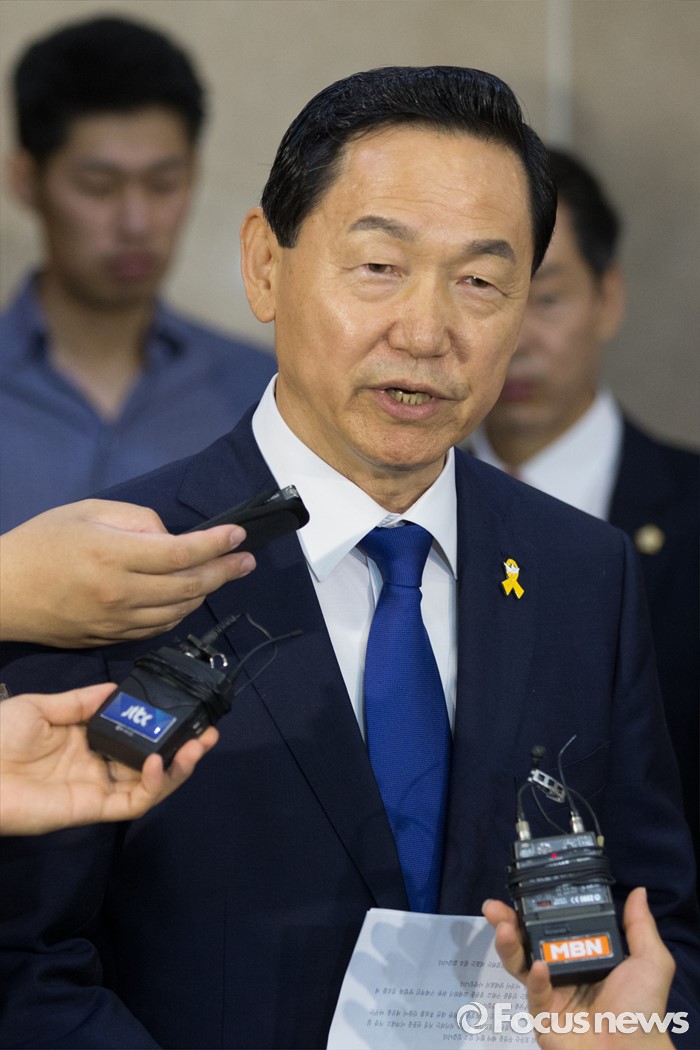 (서울=포커스뉴스) 김상곤 전 더불어민주당 혁신위원장이 24일 오전 서울 여의도 국회 정론관에서 당대표 출마 기자회견을 마친 뒤 취재진의 질문에 답하고 있다.