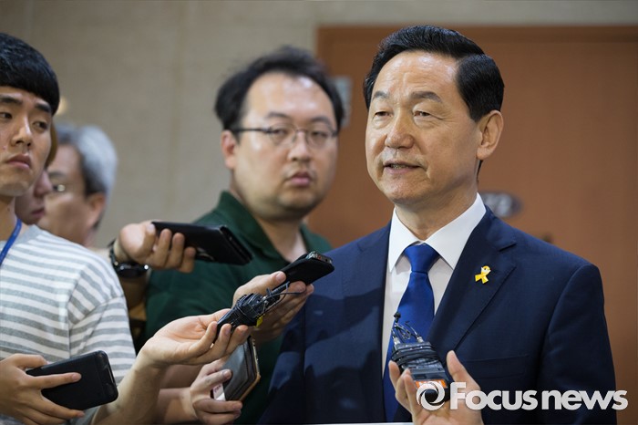 (서울=포커스뉴스) 김상곤 전 더불어민주당 혁신위원장이 24일 오전 서울 여의도 국회 정론관에서 당대표 출마 기자회견을 마친 뒤 취재진의 질문에 답하고 있다.