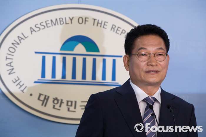 (서울=포커스뉴스) 송영길 더불어민주당 의원이 24일 오전 서울 여의도 국회 정론관에서 당대표 출마 기자회견을 하고 있다.