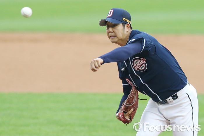 (서울=포커스뉴스) 24일 서울 잠실구장에서 열린 2016 프로야구 두산-LG 경기에서 1회말 두산 선발투수 장원준이 투구하고 있다.