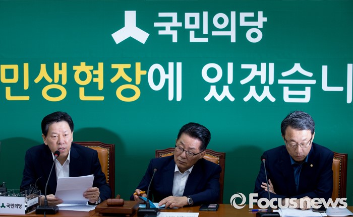 (서울=포커스뉴스) 25일 오전 서울 여의도 국회에서 열린 국민의당 비상대책위원회의에 참석한 주승용 비대위원이 발언하고 있다. 왼쪽부터 주 비대위원, 박지원 비대위원장, 김성식 정책위의장.