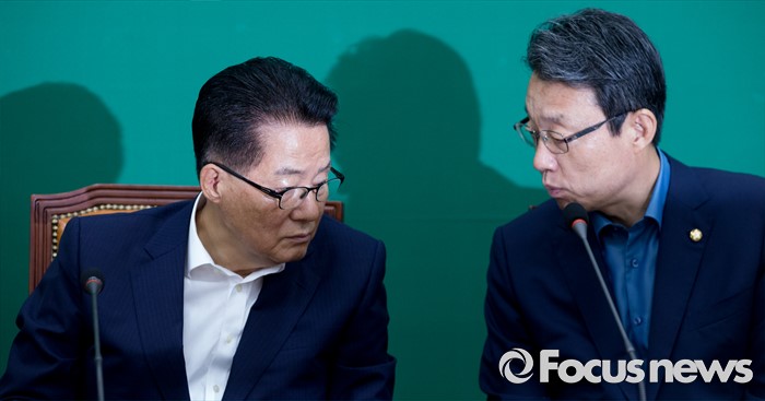 (서울=포커스뉴스) 25일 오전 서울 여의도 국회에서 열린 국민의당 비상대책위원회의에 참석한 박지원(왼쪽) 비대위원장과 김성식 정책위의장이 대화하고 있다.
