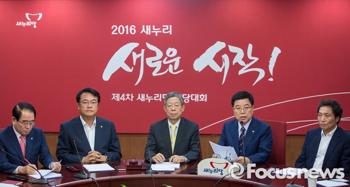 (서울=포커스뉴스) 김광림(오른쪽 두 번째) 새누리당 정책위의장이 25일 오전 서울 여의도 새누리당사에서 열린 혁신비상대책위원회의에 참석해 모두발언 하고 있다.