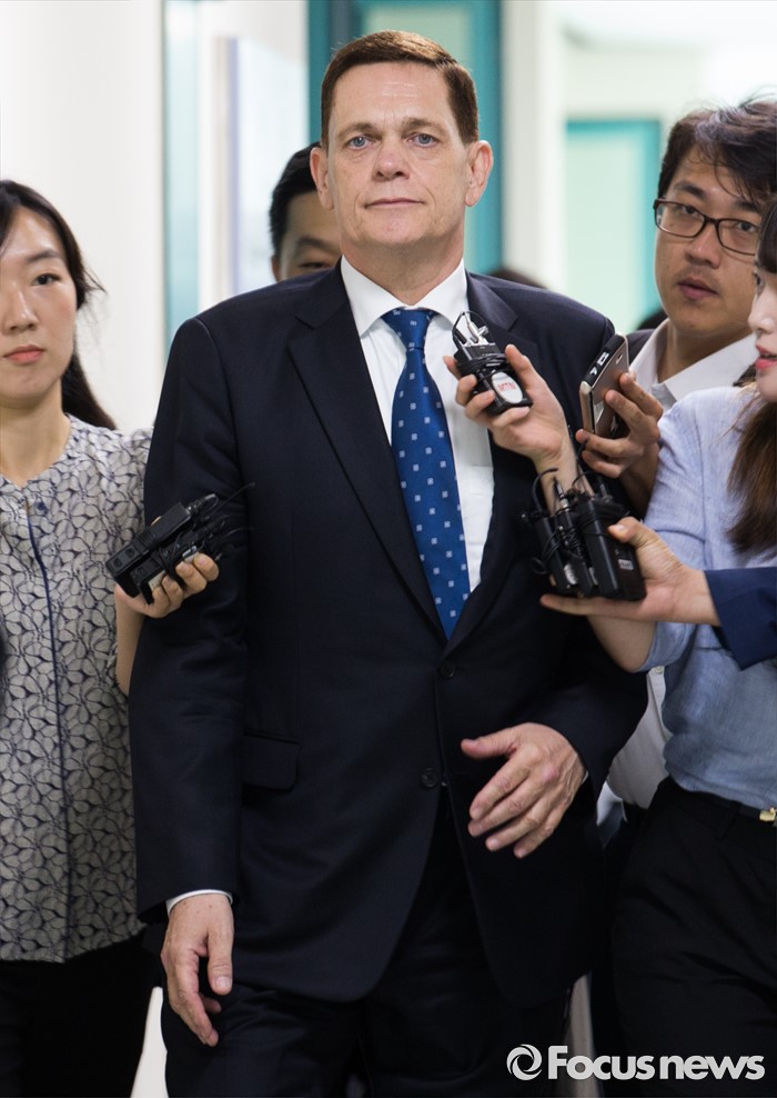 (인천=포커스뉴스) 요하네스 타머 아우디폭스바겐 사장이 25일 오전 인천 서구 국립환경과학원에서 열린 차량 인증 조작 관련 환경부 청문회에 참석하고 있다.